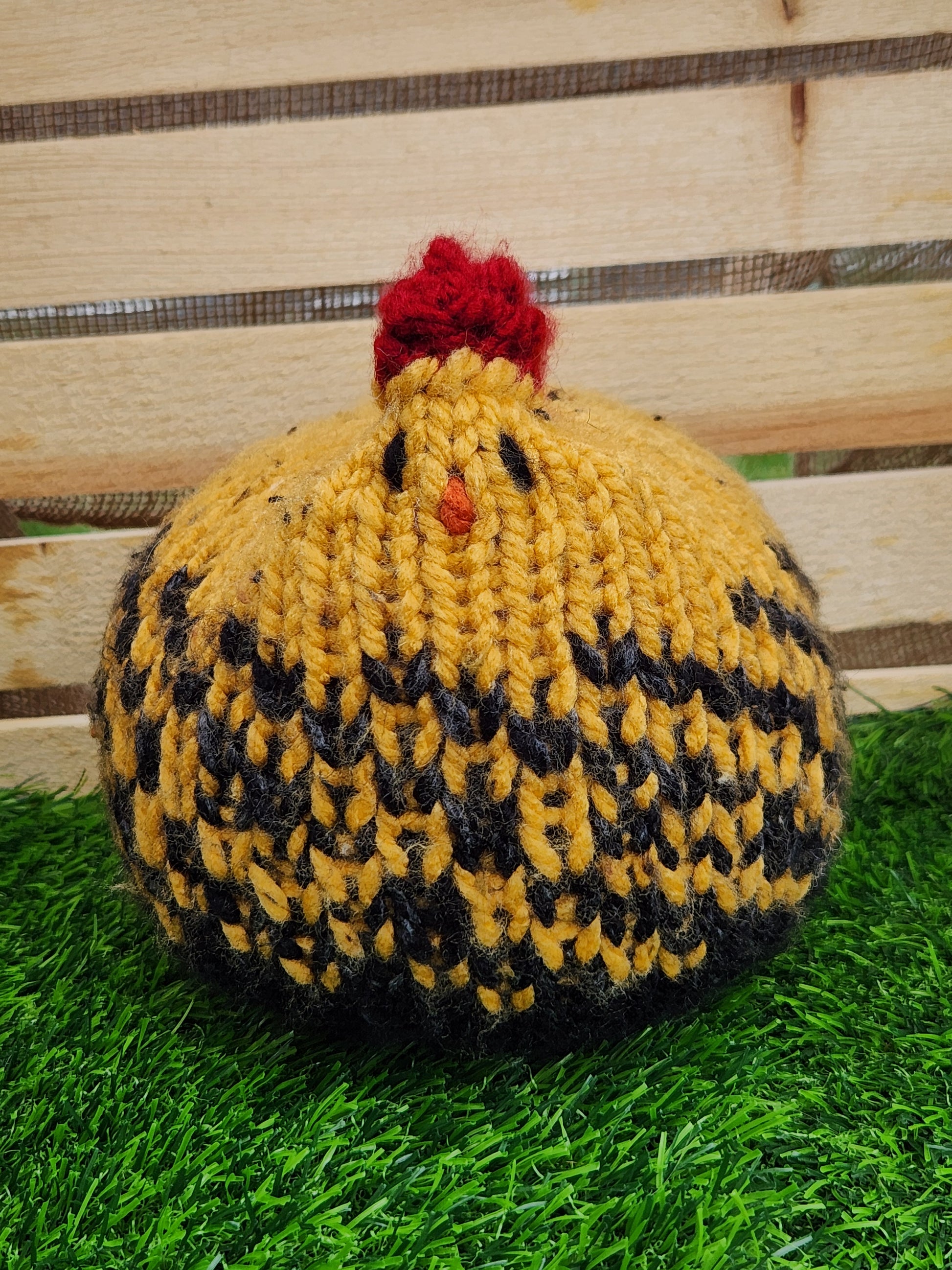 This hand knit chicken plushie is perfect for adding a touch of whimsy to any room. Its soft, handmade design makes it ideal for cuddling or displaying as a unique piece of decor. Made with care, this chicken is sure to bring joy and charm to any space.