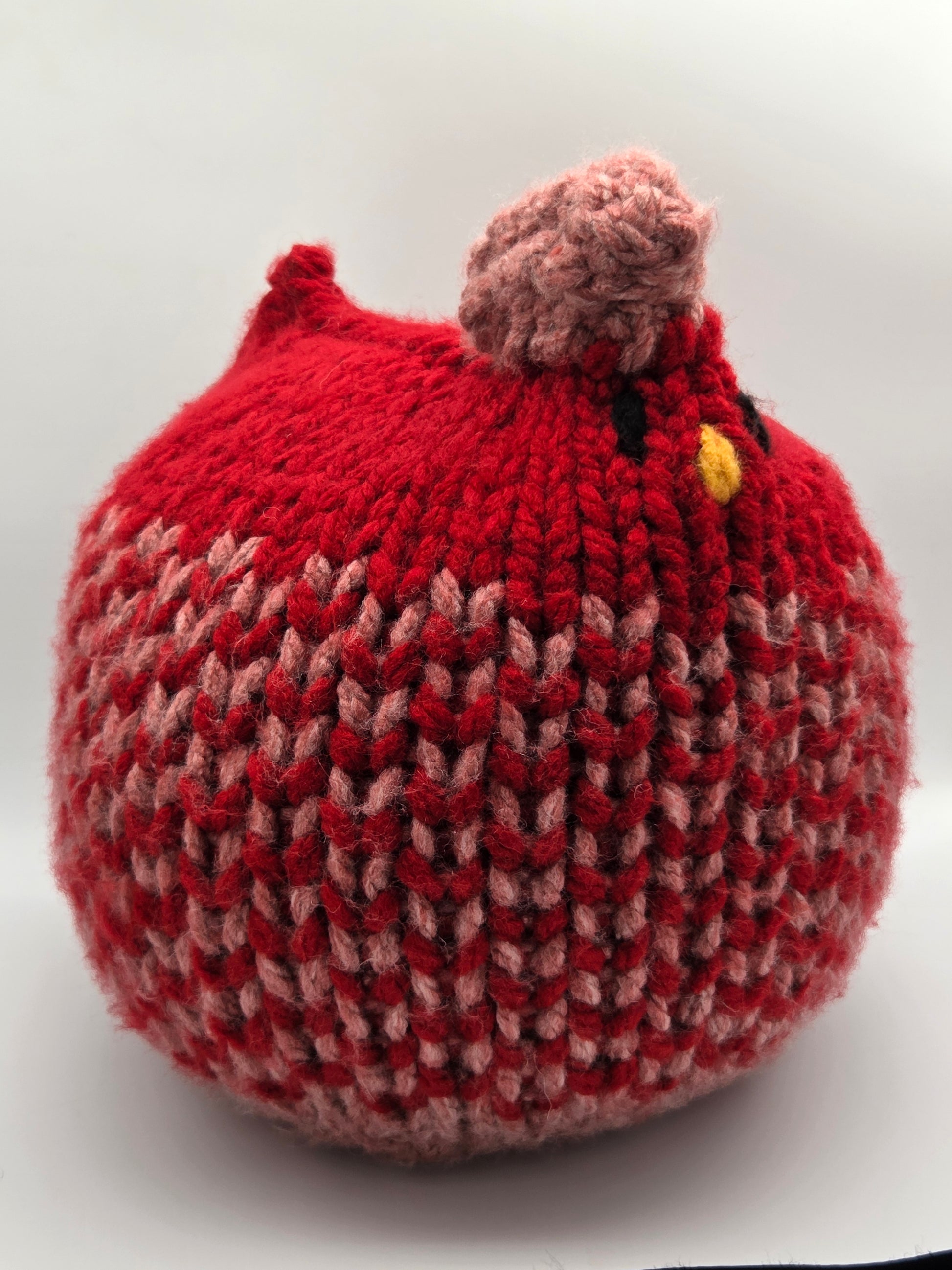 Meet your new feathery friend: a Large chicken hand-knit in a cute Red Variegated color! This little clucker is perfect for adding a touch of whimsy to any room. It won’t lay eggs, but it sure will yolk around and crack you up (pun intended)! Get ready for some serious poultry charm!