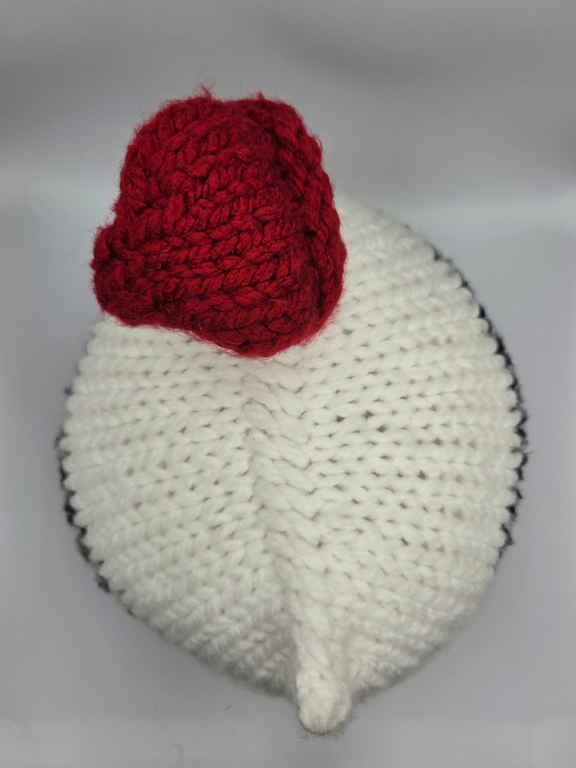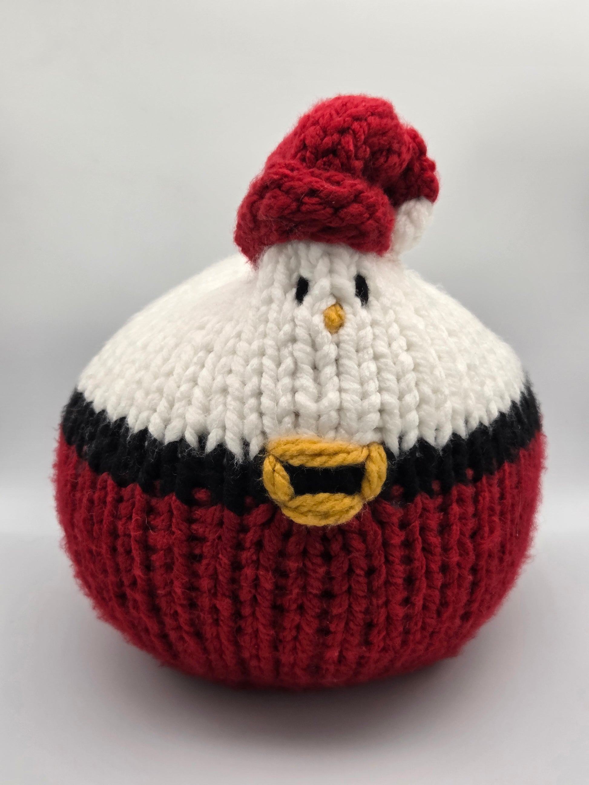 Meet your new feathery friend: a Large chicken hand-knit in a cute santa theme! This little clucker is perfect for adding a touch of whimsy to any holiday. It won’t lay eggs, but it sure will yolk around and crack you up (pun intended)! Get ready for some serious poultry charm!