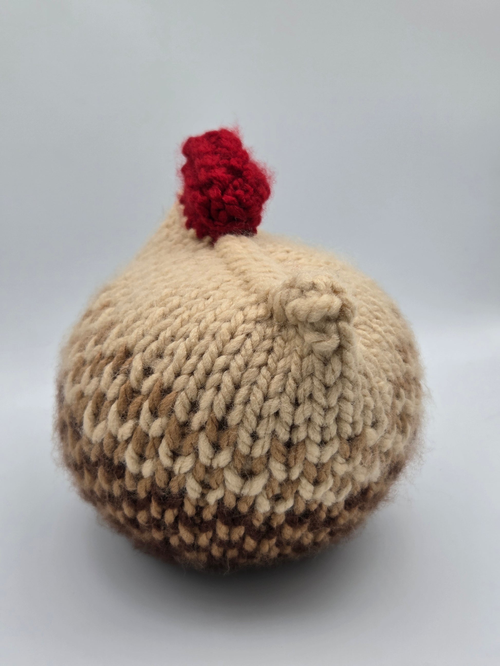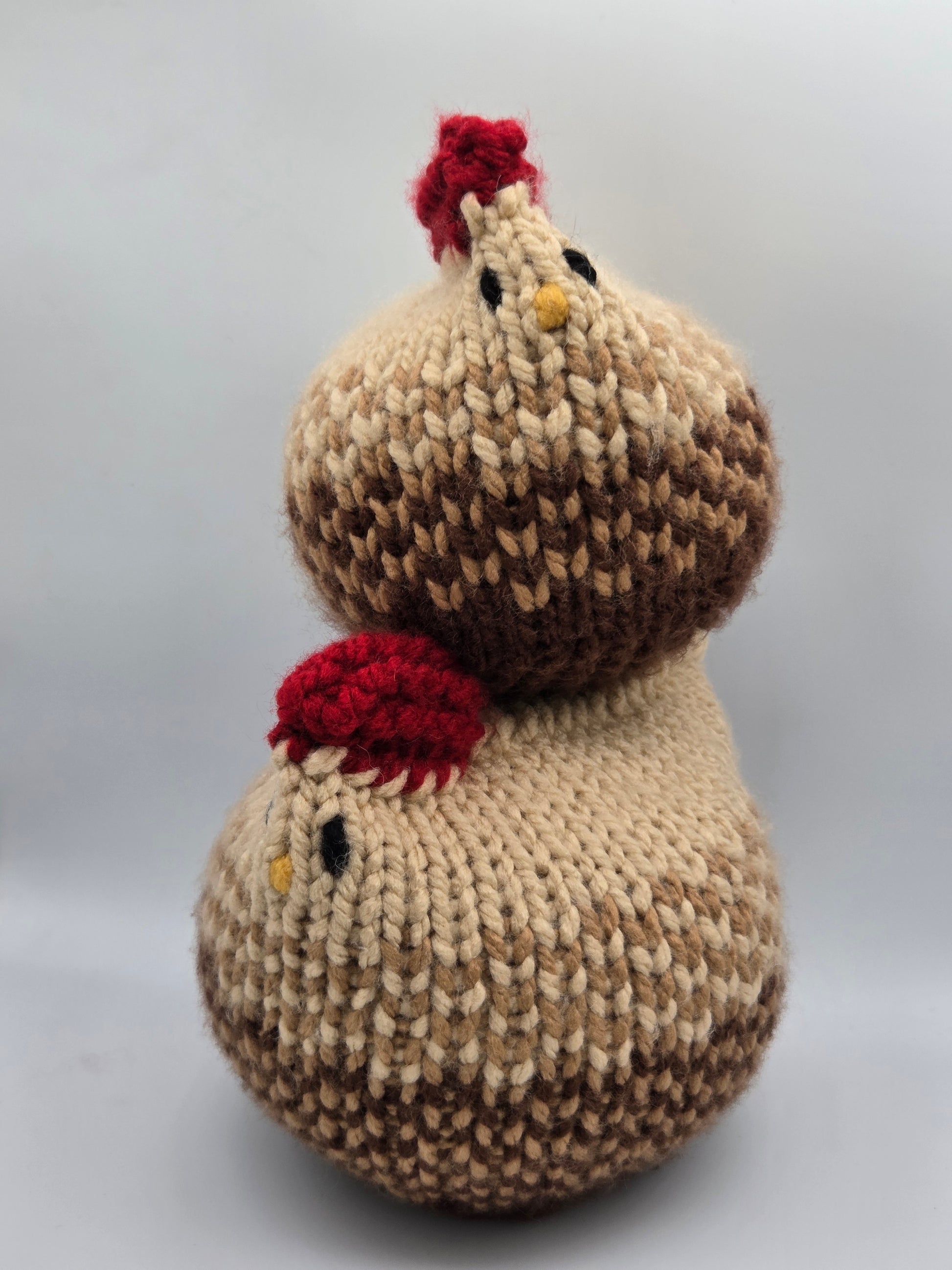 Meet your new feathery friend: a small chicken hand-knit in 3 different browns! This little clucker is perfect for adding a touch of whimsy to any nook. It won’t lay eggs, but it sure will yolk around and crack you up (pun intended)! Get ready for some serious poultry charm!