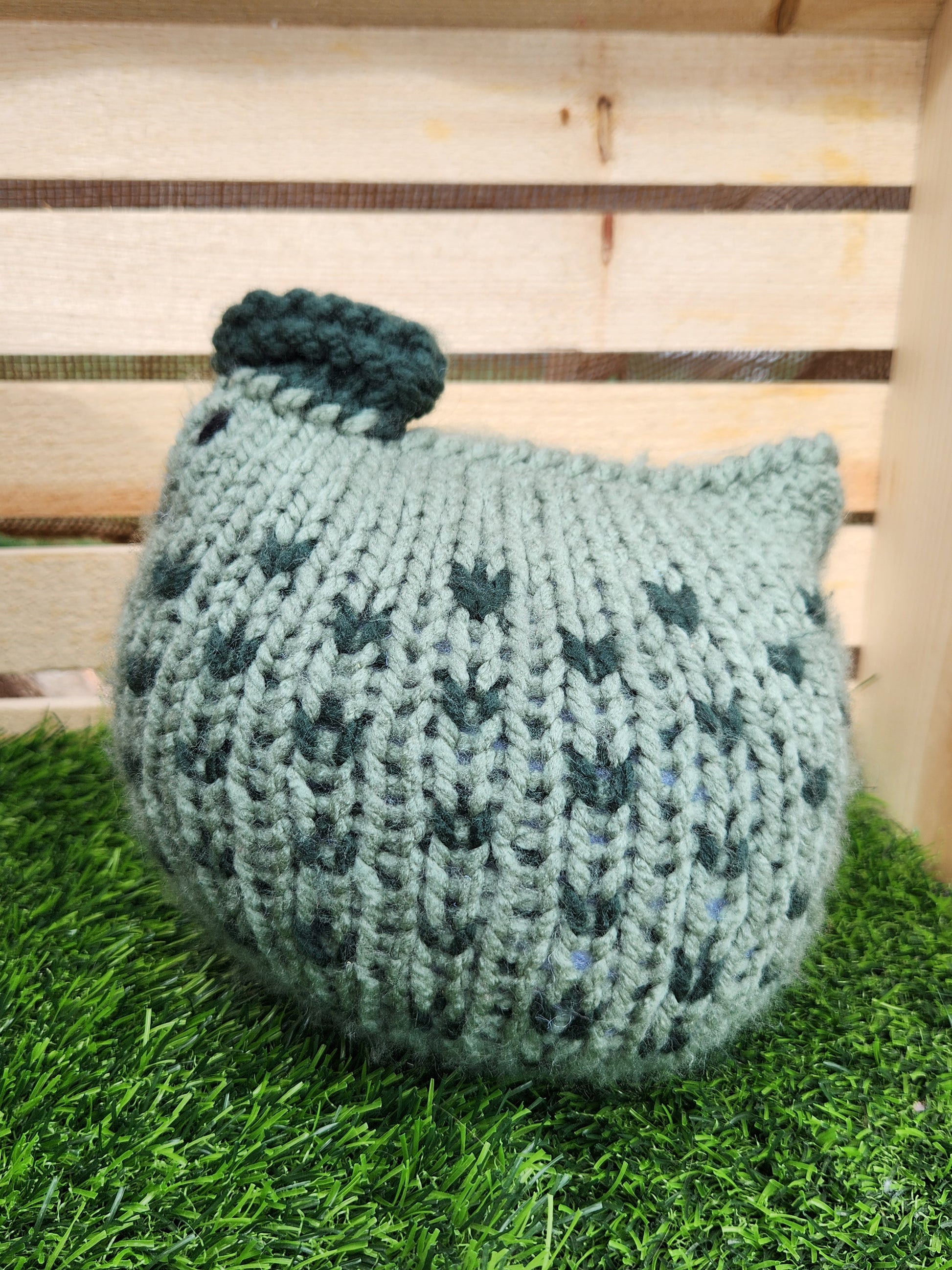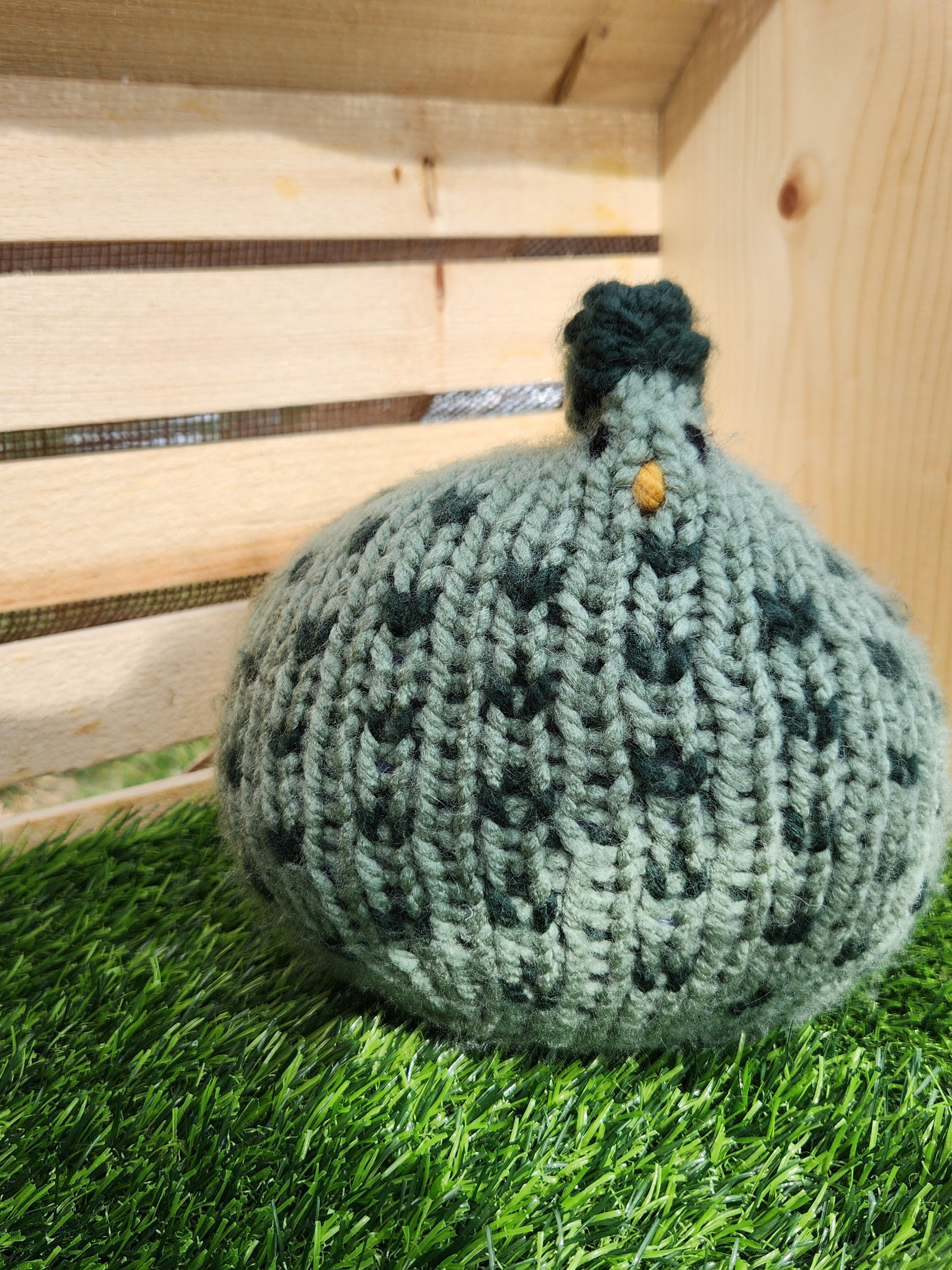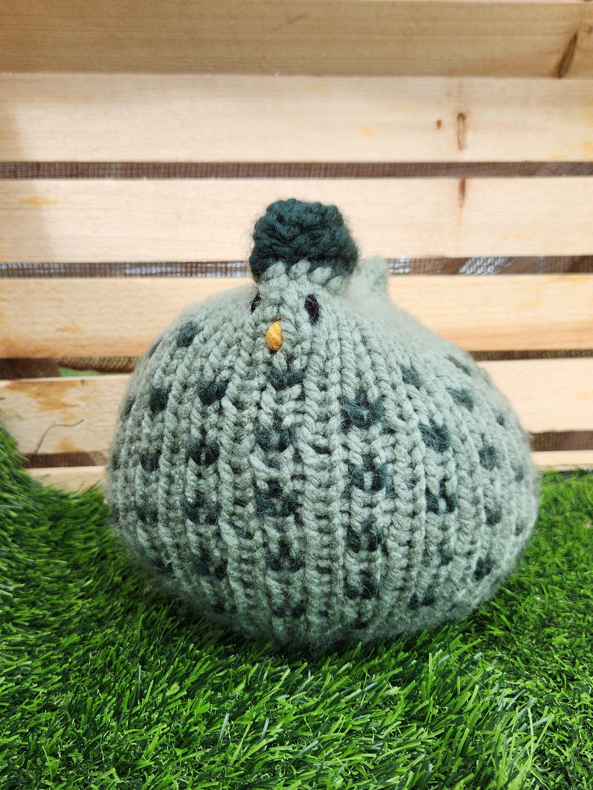 This hand knit chicken plushie is perfect for adding a touch of whimsy to any room. Its soft, handmade design makes it ideal for cuddling or displaying as a unique piece of decor. Made with care, this chicken is sure to bring joy and charm to any space.